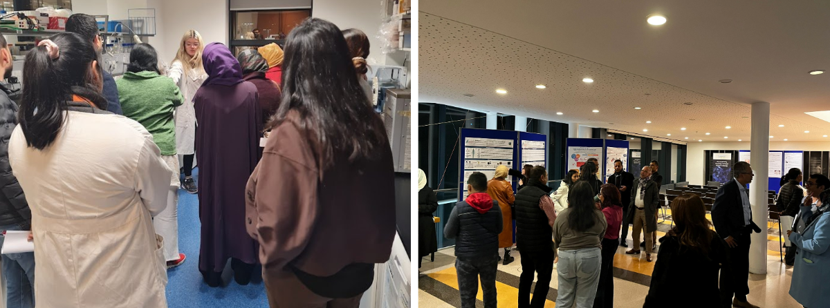 Invisible Spectrum attendees observing practical demonstrations as part of tour of SBI research facilities (left) and viewing poster presentations (right)