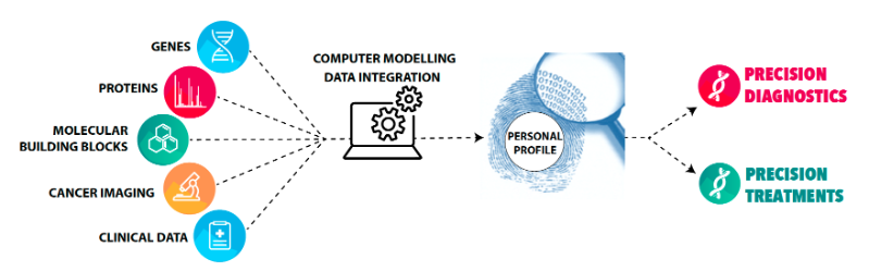 Precision (or ‘personalised’) medicine uses data about a person’s genes (genomics), along with additional information on their cancer, to understand the unique pathways of a disease or treatment response in that person, and target their treatment accordingly.