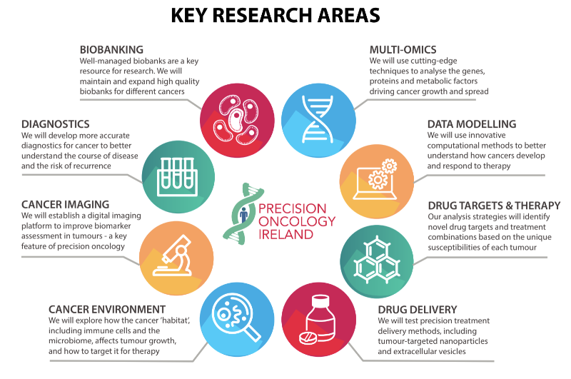 Precision Oncology Ireland uses cutting-edge technologies to generate unique genetic and molecular profiles for each patient’s cancer. The key competitive advantage of the programme lies in the innovative computational methods applied to make sense of these profiles, and decipher what drives each individual cancer. We are working towards better cancer diagnostics, personalised cancer treatment and faster drug discovery and development.