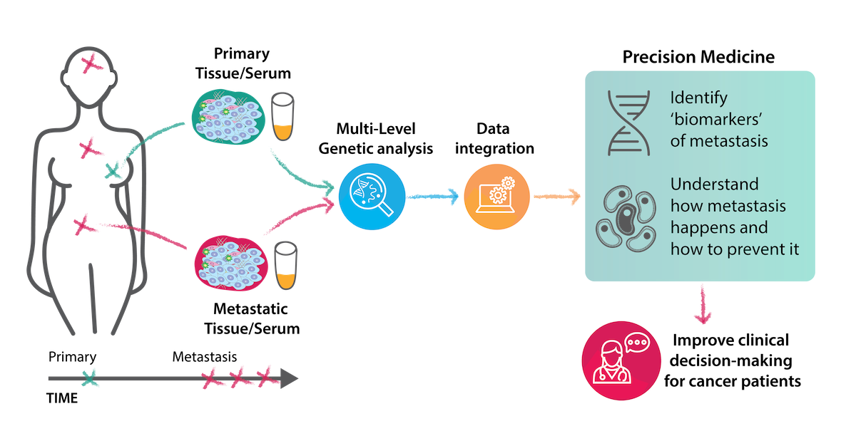 Metastasis occurs in approximately 30% of breast cancer patients, but the mechanism of progression to metastatic disease remains largely unknown, and thus far there are no predictive markers of disease progression. This project is applying cutting-edge techniques to identify a panel of biomarkers predicting metastatic progression in breast cancer. Considering that more than half of the patients diagnosed with breast cancer metastases have limited treatment options and typically succumb to disease within a few years, this addresses an unmet clinical need.