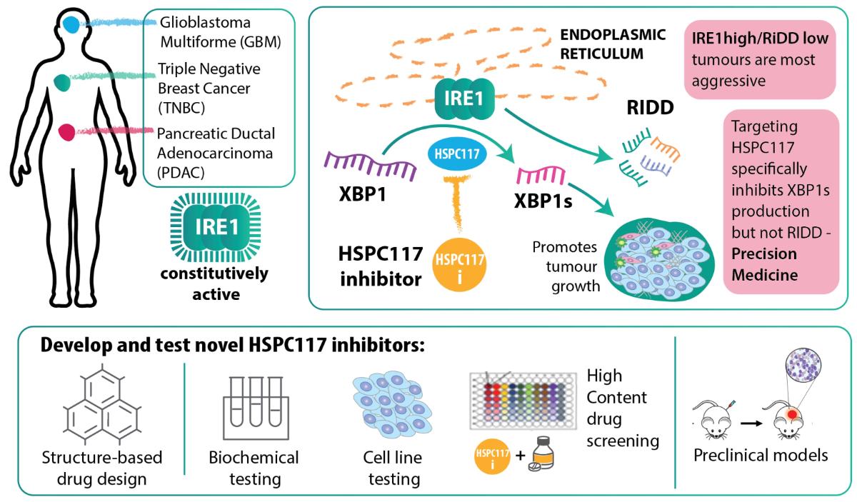 Targeting HSPC117 offers a potentially more precise way to exploit ER stress signalling for cancer therapy. The industry partner Cell Stress Discoveries has excellent opportunities to grow this area due to its unique expertise and collaborations with leading ER stress experts within POI. The development of HSPC117 inhibitors will enable precise targeting of cancer and lead to novel combination therapies.