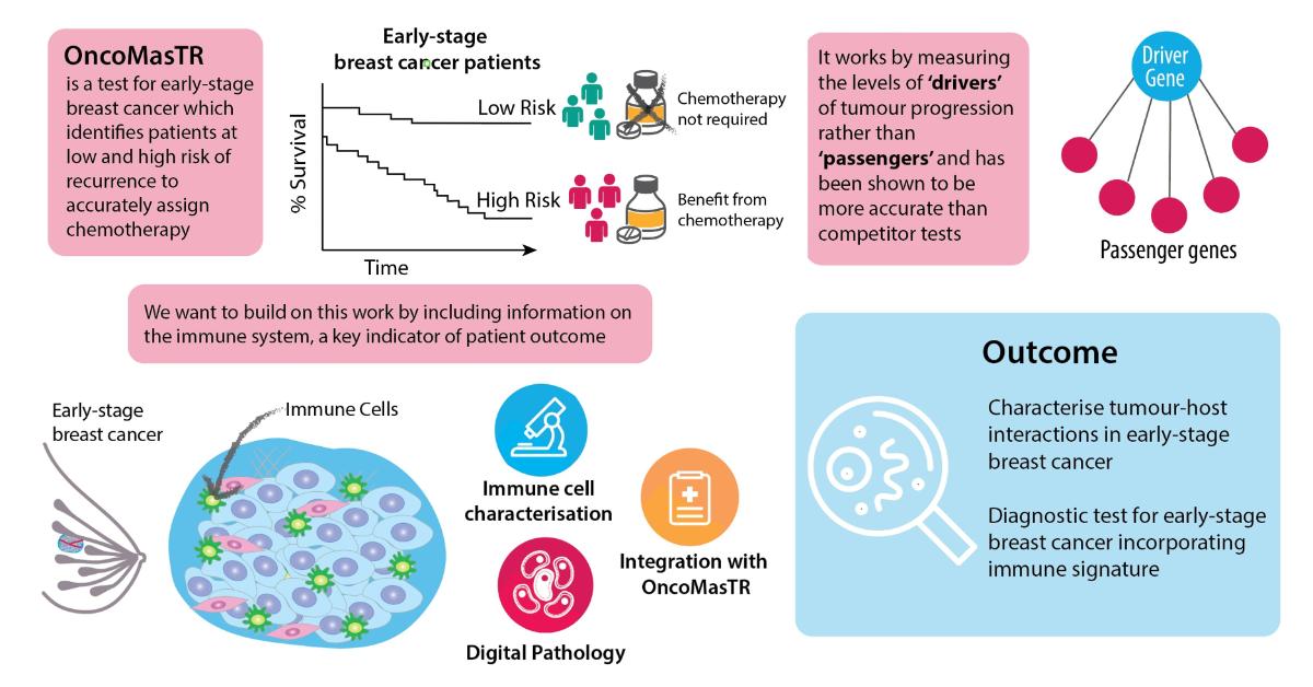 This project aims to build upon this research and further improve the OncoMasTR test by incorporating an immune signature. Immunotherapies are quickly gaining importance in oncology, but in contrast the utilisation of immune status for diagnostics is lagging behind.